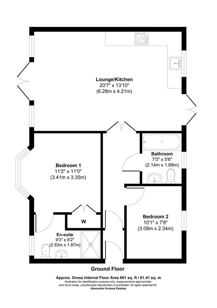 Internally, the flat comprises a welcoming entrance hallway that leads through to a generously sized open plan living room with adjacent kitchen. The property boasts two spacious double bedrooms, one with en-suite access and a contemporary three-piece bathroom suite. Externally, the flat benefits from a small sunny outside garden, well-maintained communal areas and allocated parking.